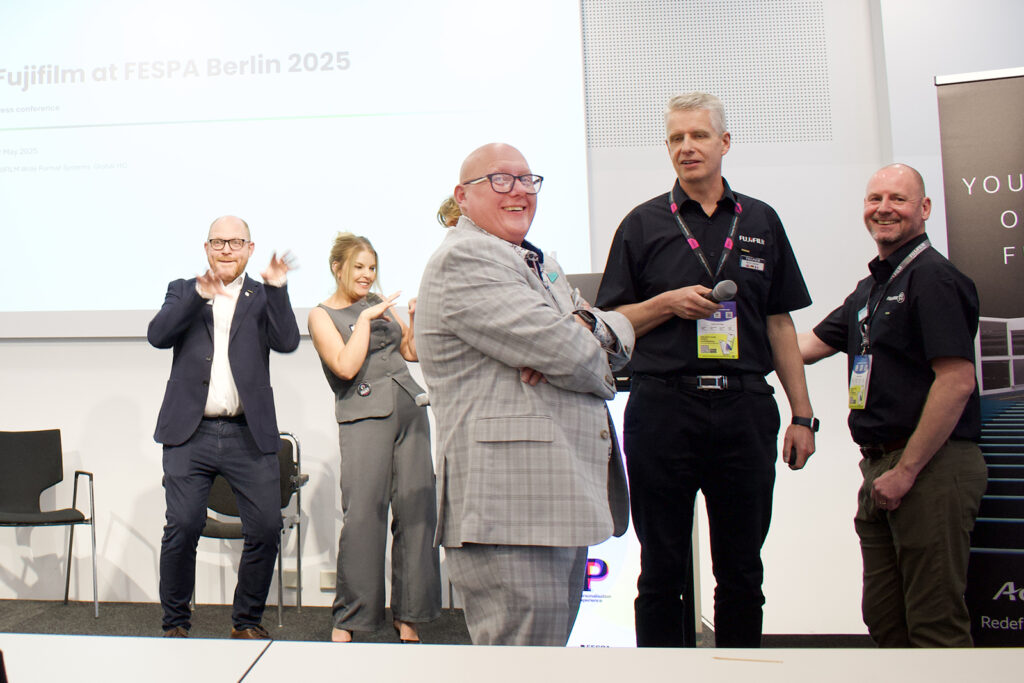 – Strekkingen påvirker ikke bildet i det hele tatt. Takket være UV -egenskapene er fargestyrken i trykket uovertruffen. Dette er virkelig en revolusjon i bransjen, og jeg håper du husker dette øyeblikket fordi vi er utrolig stolte. Dette er bare begynnelsen, og vi ser en lys fremtid for dette produktet.