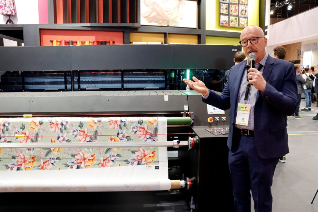 Innen tekstiltrykk ble også LF 430 GF vist frem, som er et resultat av oppkjøpet av Aleph. Systemet trykker direkte på stoffet med vannbasert tekstilblekk, noe som muliggjør en mer bærekraftig og moderne produksjon.